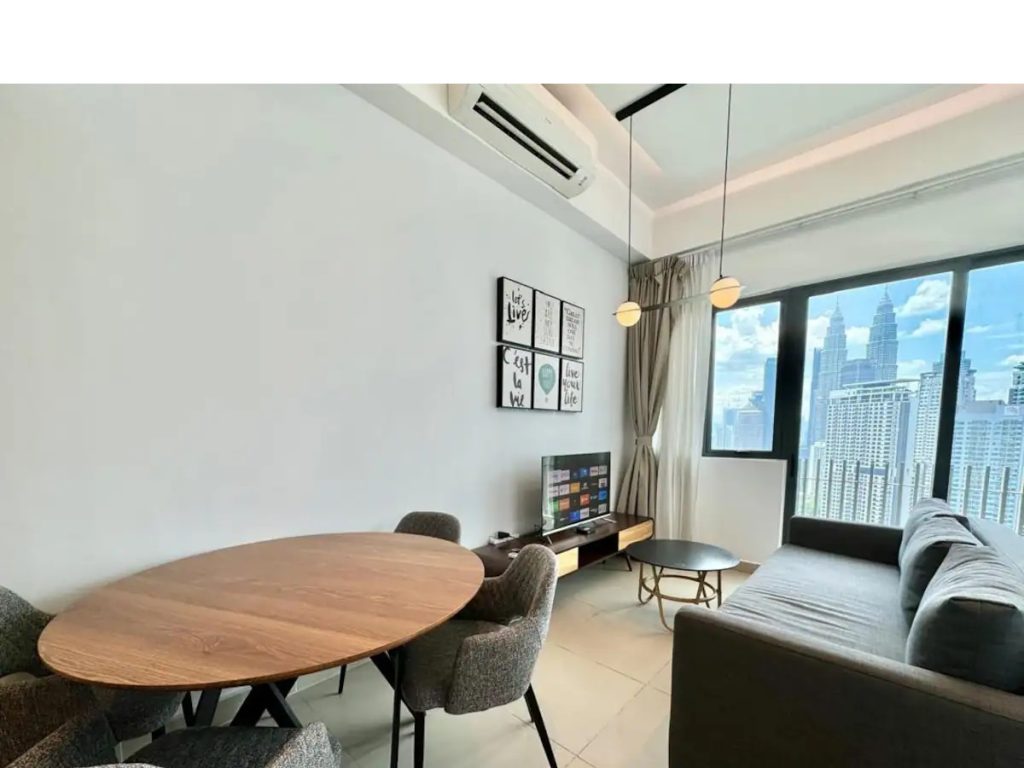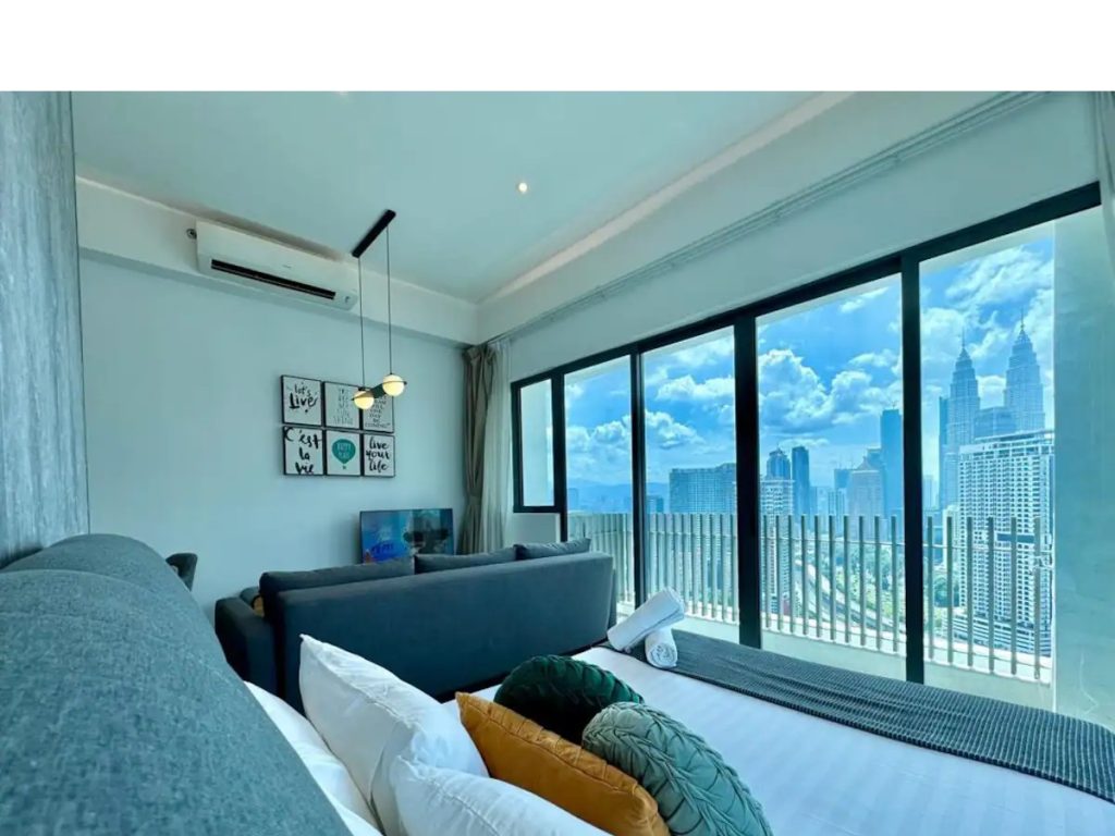 Spacious one bedroom apartment with the BEST Sky Pool View – KLCC Twin Tower, KL Tower, Merdeka 118 Tower. Only 5-10 mins walking distance to all the city’s main attractions and shopping centres.