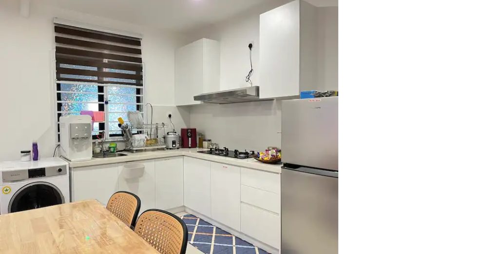 The unit consist of one big bedroom with 1 double queen size bed and futon. We have fridge to store your cold drinks and food. We provided stove for simple cooking and well equipped with pots, pans, also plates, spoon and fork. We also have have washing machine as well as for your convenience.
