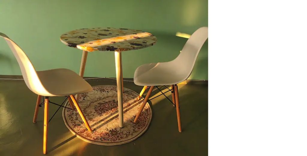 1x living area with small table for dining