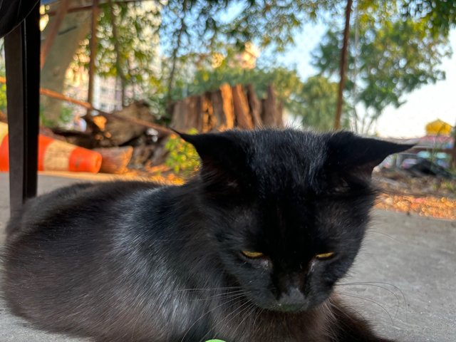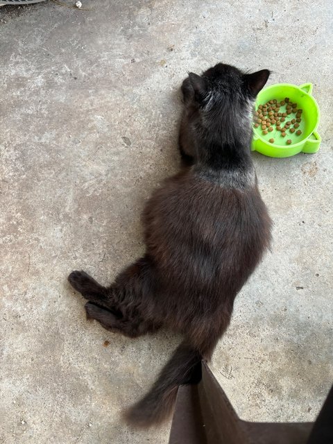 There is one black female cat, manja once she knows you. Very cute meowing as well.