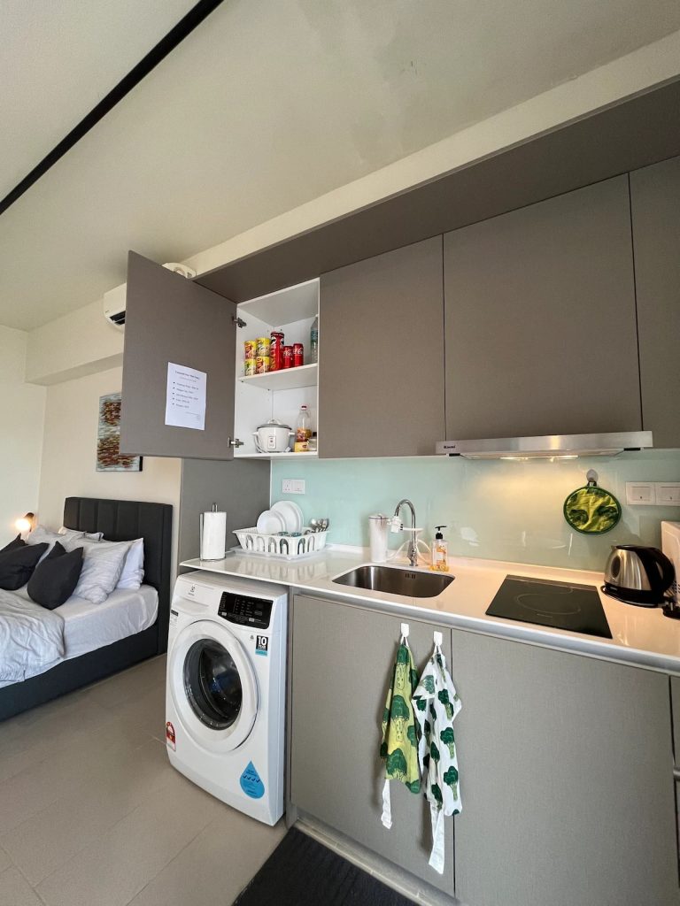 – Dapur lengkap sepenuhnya dengan dapur, microwave, pembakar roti, cerek, periuk nasi, set memasak (periuk & kuali) dan semua peralatan