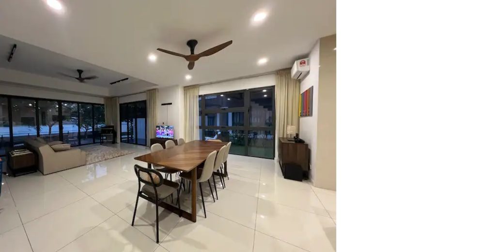A spacious homestay by Putrajaya Lake offering beautiful views and a peaceful atmosphere. After exploring beautiful Putrajaya, guests can relax on the patio, swim in the private pool, enjoy stunning sunrises/sunsets, and unwind in cozy rooms with high-speed internet of up to 500 Mbps. It’s the perfect retreat for a family gathering, with 6 rooms that can accommodate up to 33 guests (mix of 25 adults & 8 kids, based on our proposed room layout). Book now & experience the joy!