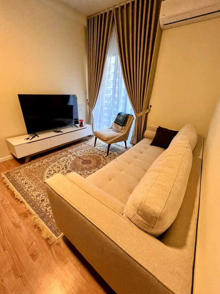 • Modern Conveniences including a Smart TV (55″), fridge, microwave, rice cooker, hob, hood, kettle, iron and more