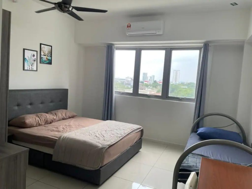 – Bilik utama: 1 katil queen +1 katil single