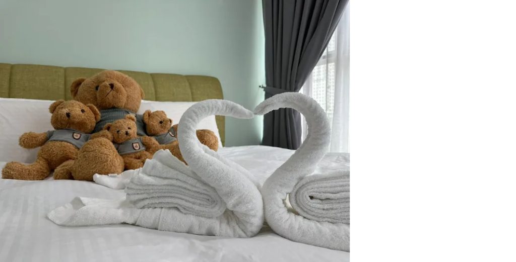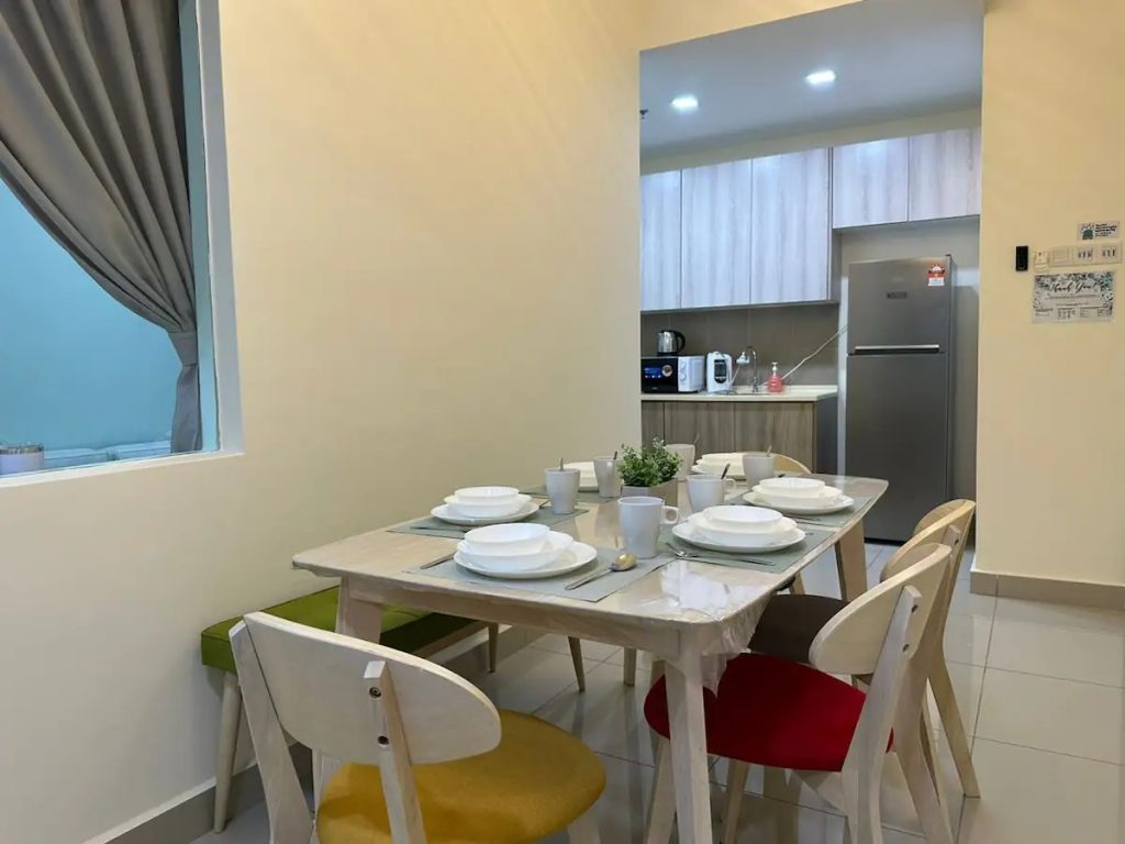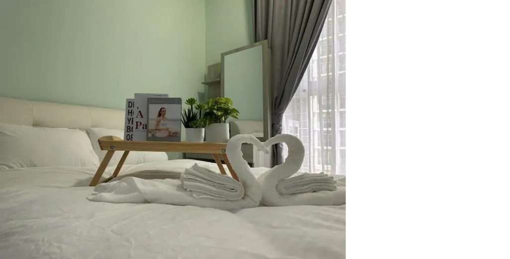 Kawasan binaan luas 1100sf menawarkan dapur lengkap, ruang makan, balkoni dan bilik tidur. Prosedur daftar masuk terperinci akan disediakan kepada tetamu semasa pengesahan tempahan. Kami mempunyai internet Berkelajuan Tinggi 100mb yang disertakan. Semua perabot kami BARU dan dipilih dengan teliti oleh pasukan kami untuk membolehkan tetamu kami menikmati penginapan mereka di unit kami. Kami juga menyediakan katil berkualiti tinggi untuk memastikan tetamu kami tidur malam yang sangat nyenyak.