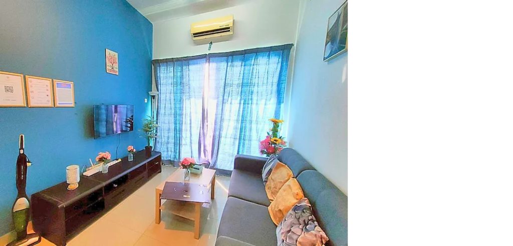 – Ini ialah apartmen 1 bilik tidur, 1 bilik mandi. Ia terletak di tingkat 9 atas. Unit ini mempunyai pemandangan Bandar yang indah.