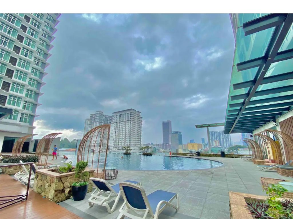 Studio apartment with 1 King size bed provided for stay up to 2 adults or 3 adults with request. Suitable for couple. This unit come with 1 free parking + 500 mbps TIME Internet subscription + Netflix+ Free to use washers and dryers at service centre in the same building at different floor + free refill Diamond drinking water.