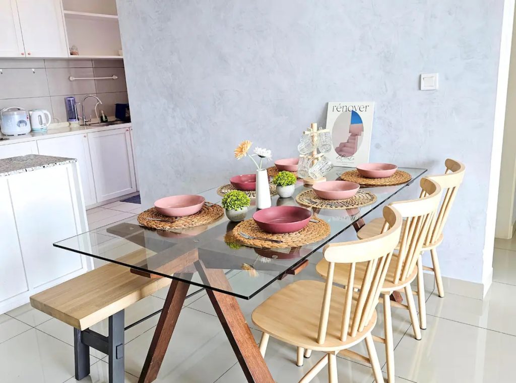 Property Layout 116.5m2 / 1250sqft. It can host for maximum 6 guests for a good night sleep with 3-bedroom . 2 Bathrooms with Instant Water Heater, Bath Towel & Shower Gel.