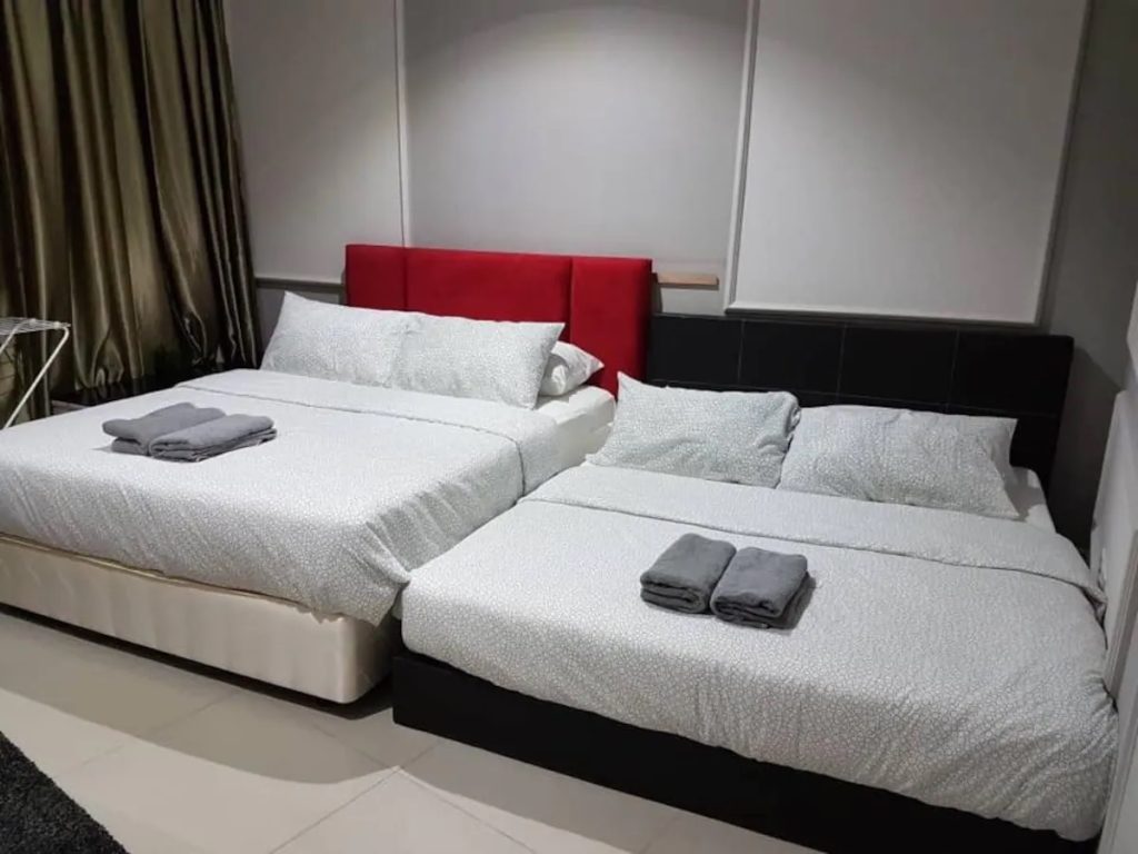 One master bedroom with 2 queen size bed with 1 private bathroom. One big living hall with dining area and one bed matress