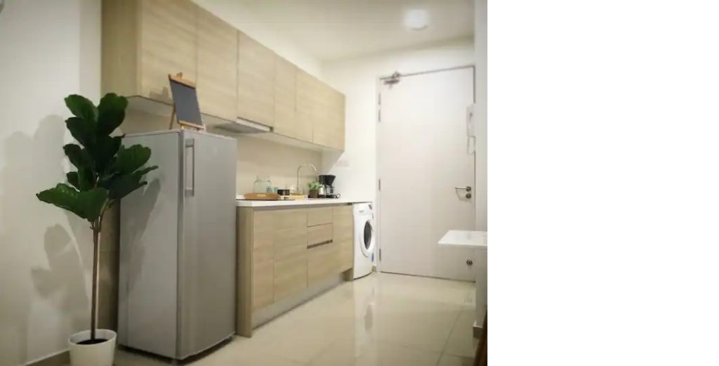– Fully equipped kitchen with utensils. [ inc fridge, microwave, washing machine, kettle, coffee maker, induction stove] However COOKING IS NOT ALLOWED, therefore we don’s provide cooking utensil.