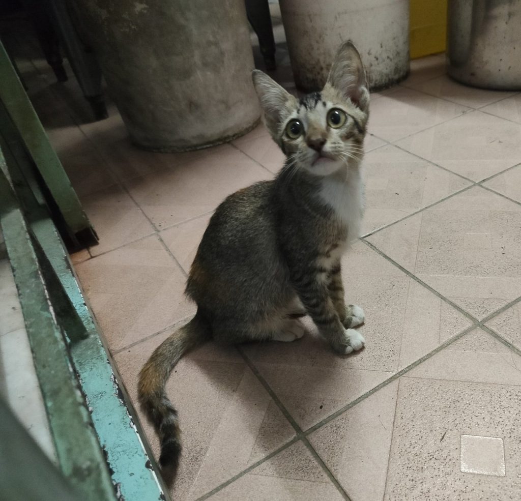 Mimi adalah seekor anak kucing yang berusia tiga bulan. Dia berperilaku baik dan agak takut dengan orang, tetapi ini dapat diperbaiki seiring waktu. Sila berikan peluang kepadanya untuk mencari rumah yang kekal.