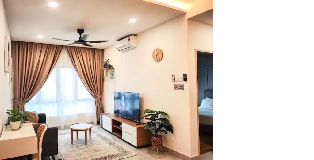 The Living room has a big window that give you the view of Bangi. In a clear day, you could see Merdeka Tower Kuala Lumpur from the house. There is a sofa, coffee table and a smartTV & WIFI router where you can watch movie, news or documentary or just enjoy reading books that is prepared for you in the living room.