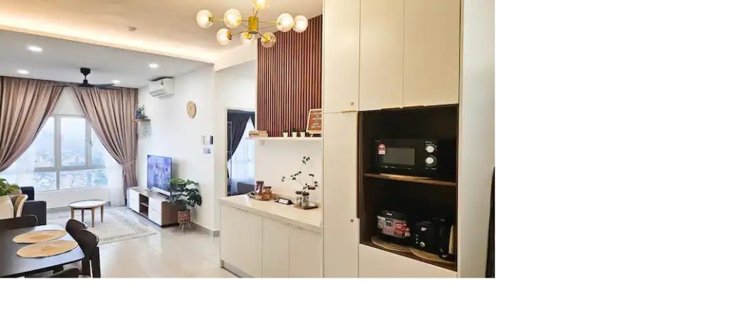 The kitchen is quite complete for you to cook. There is a kitchenette, an induction cooker, sink, cutlery, kitchenware, rice cooker, blender, kettle, air fryer, dinnerware, microwave & refrigerator. Coffee, tea and sugar are also on the house.