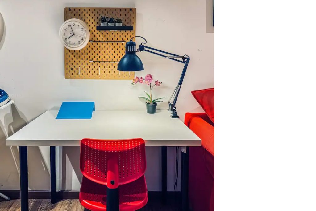Office section with office table, desk chair and study lamp